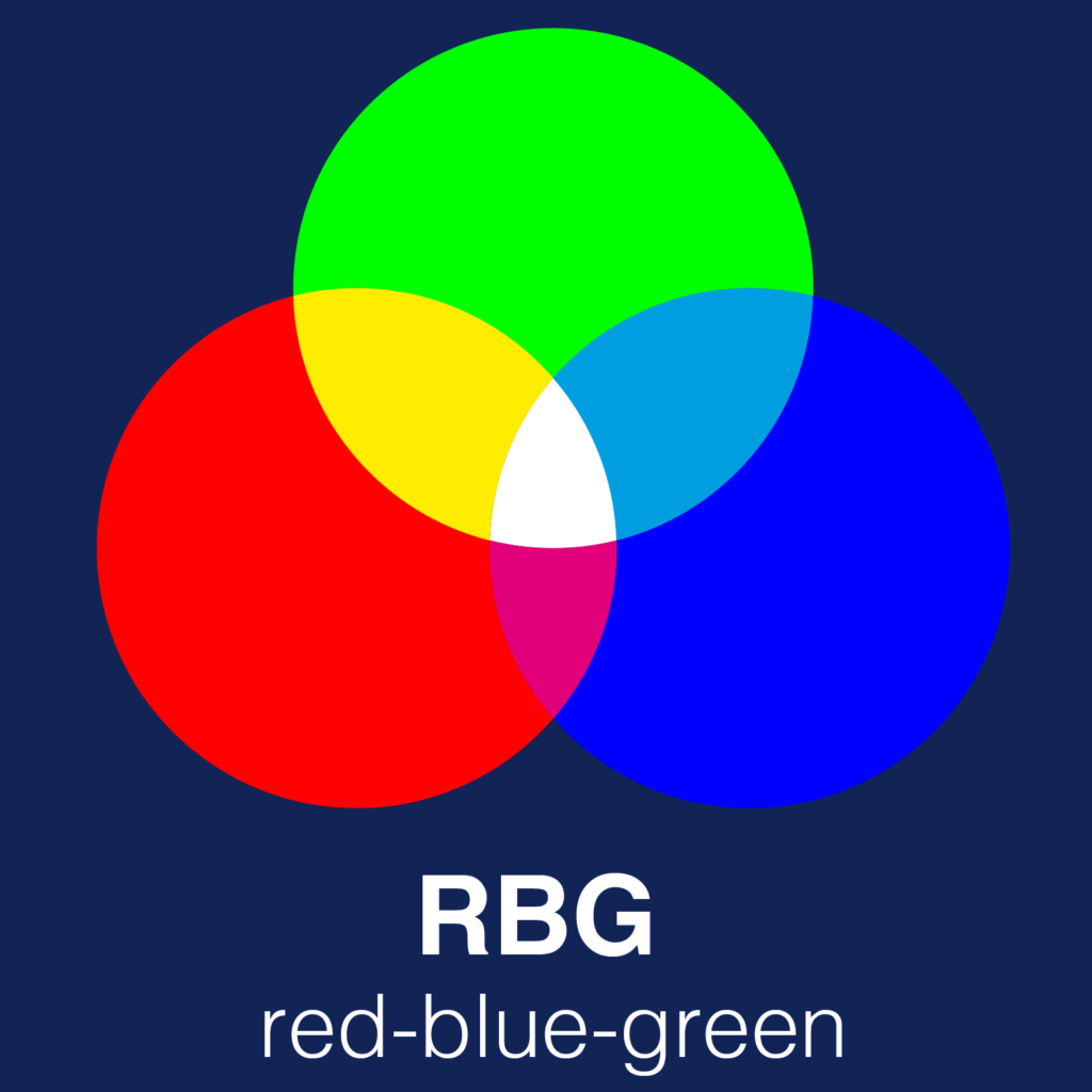 Lo abbiamo accennato prima: rosso, verde e il blu sono i colori primari digitali e funzionano per addizione (sommano la loro luminosità) ed è per questo a monitor i colori sono più brillanti. Questo metodo di colore è anche ciò che permette di alleggerire i files, perché non c’è nessuna macchina (oltre i device con cui si fruisce) che deve codificare le percentuali di colore da mescolare. C’è un codice colore prodotto dalle quantità di R(red) G(green) B(blu) che verrà visualizzato su tutti i dispositivi!